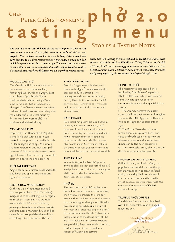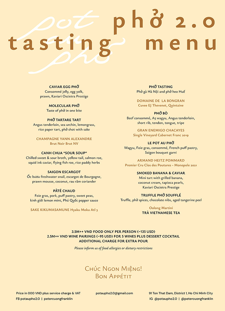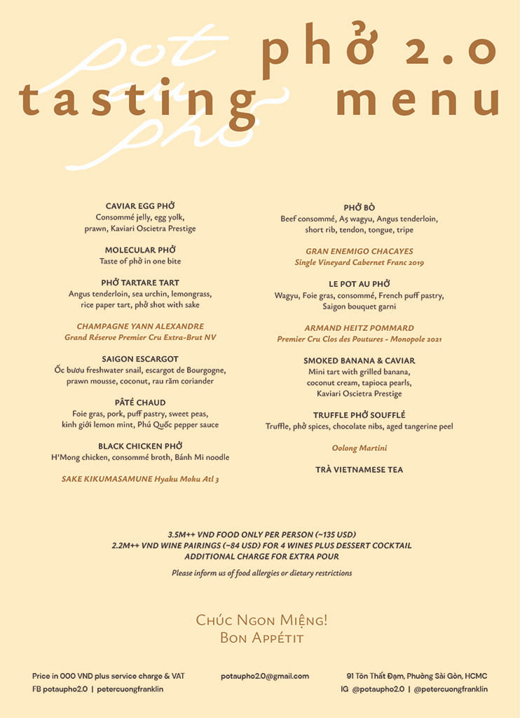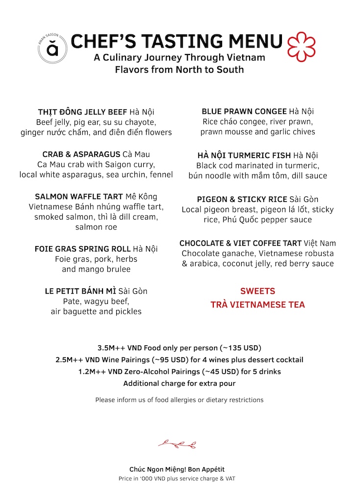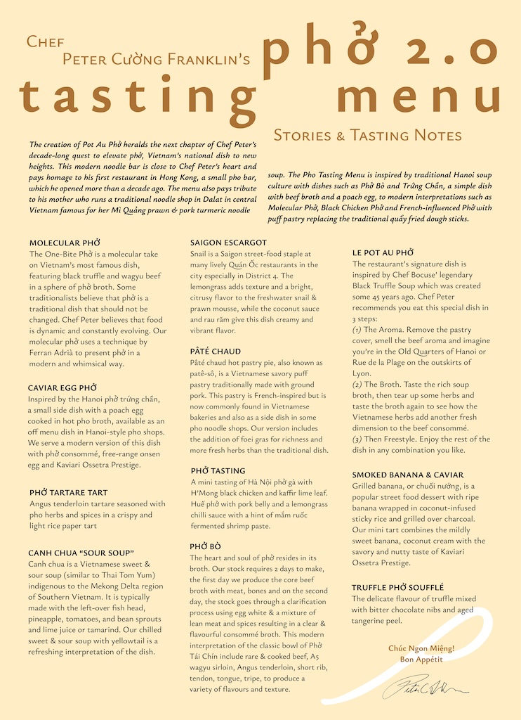 Chef Peter’s “Cuisine Mói” or “New Vietnamese Cuisine” reflects his vision of a modern Vietnam that is deeply respectful of its history and traditions yet progressive and international in outlook. He takes inspiration from the country’s vibrant food culture and uses fresh ingredients often sourced from local markets while incorporating French culinary techniques honed during his training at Le Cordon Bleu.
