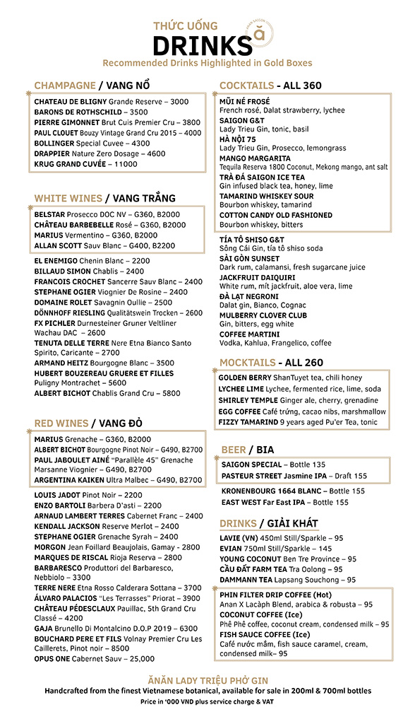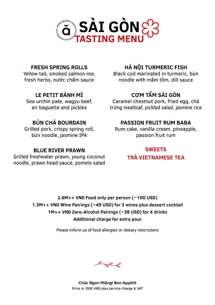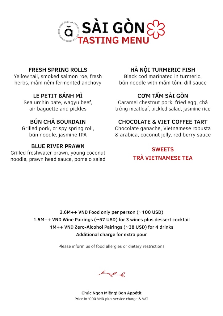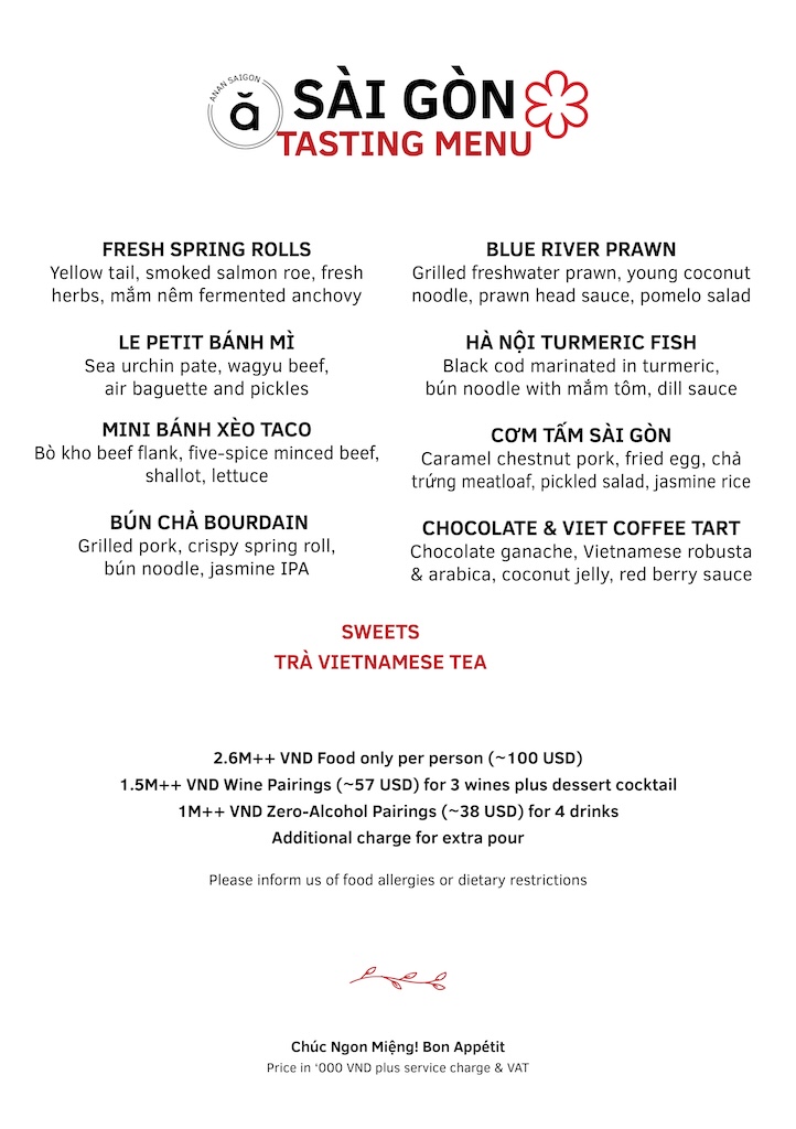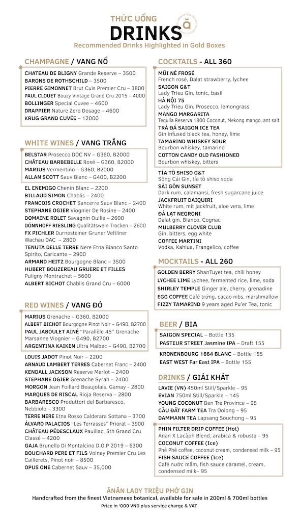 Anan Saigon currently offers two tasting menus which offer a perfect introduction to Chef Peter’s modern New Vietnamese Cuisine. The Saigon Tasting Menu showcases modern interpretation of classic Vietnamese dishes such as Le Petite Bánh Mì, Bún Chả Bourdain and Hà Nội Turmeric Fish. For an even more gastronomic experience, we recommend the Chef’s Tasting Menu, which details a culinary tour of the country with regional dishes from North to South. In addition, a full A La Carte menu features signature dishes such as Bánh Xèo Taco, Đà Lạt Street Style Pizza, Mekong Delta Fish, Cơm Tấm Saigon and Fish Sauce Ice Cream.